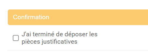 Lorsque tous les documents souhaités sont déposés, cocher la case « J'ai terminé de déposer les pièces justificatives » avant d'enregistrer.