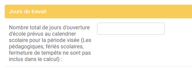 jours d’ouverture d’école prévu au calendrier scolaire entre le premier et le