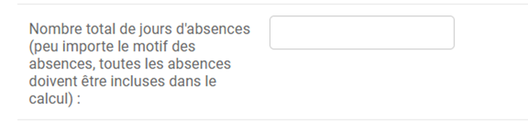 10. Il faut inscrire le nombre total de jours d’absences pour la période visée pour la demande.