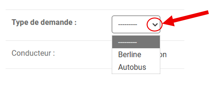 Type de demande : utiliser la liste déroulante pour sélectionner.