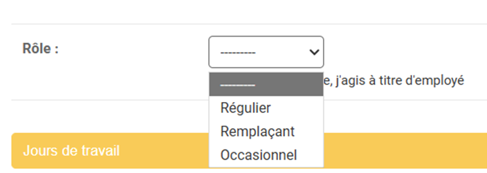 Rôle, sélectionner votre rôle selon les trois catégories