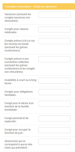le total des absences déclarées, le « Formulaire d’exception – Détail des