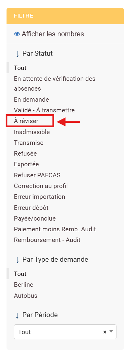 2. Dans la section Filtres à droite de l'écran, cliquer sur « À réviser »