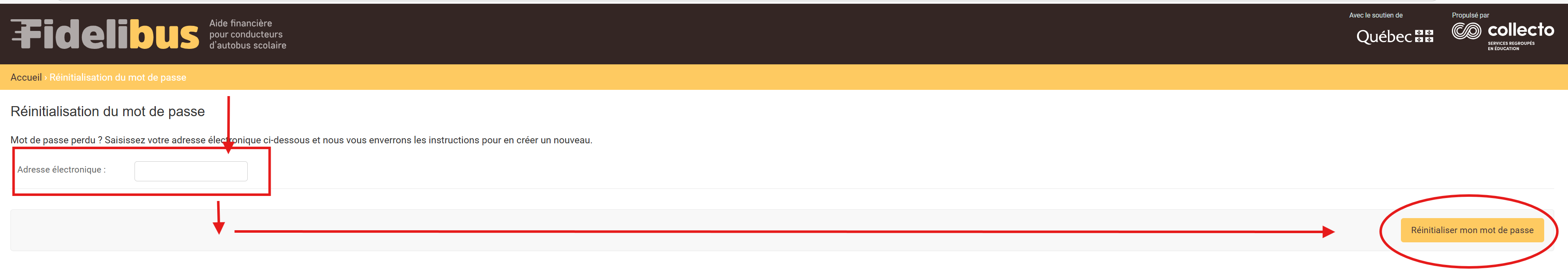 3.1 Entrer l'adresse de courriel qui est inscrite à votre compte Fidelibus
